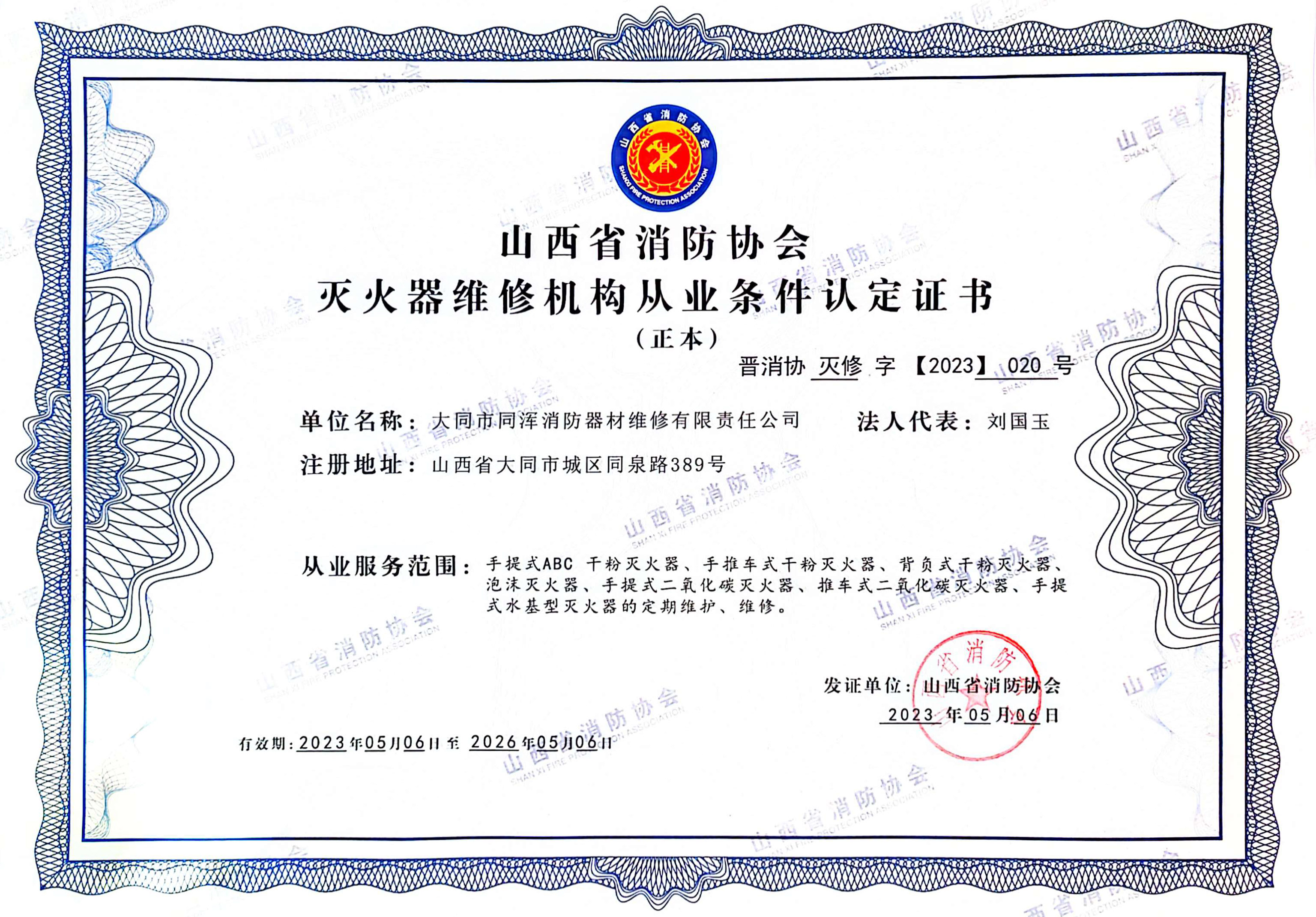 大同市同渾消防器材維修有限責(zé)任公司,位于大同市同泉路389號,始建于2000年,是公安部消防局定點銷售和維修的企業(yè),歷經(jīng)多年的創(chuàng)建、發(fā)展和拼搏,現(xiàn)有多家消防器材廠商供應(yīng)我公司,并有現(xiàn)代化維修設(shè)備,標(biāo)準(zhǔn)的廠房,嚴(yán)格的管理,優(yōu)良的設(shè)備,良好的服務(wù)并受到各行各業(yè)的好評。總經(jīng)理劉國玉嚴(yán)格管理,嚴(yán)格要求,精益求精,認(rèn)真負(fù)責(zé),帶領(lǐng)團(tuán)隊熱烈歡迎各界朋友顧客光臨。